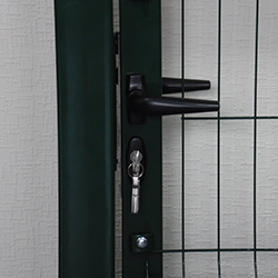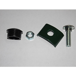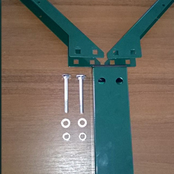 Кріплення панелі до стовпа огорожі проводиться за допомогою спеціальної п-подібної скоби, болти М8х30 і гайки М8. Залежно від висоти огорожі, на один стовп необхідно від двох до чотирьох комплектів кріплення. Один комплект кріплення складається з скоби, болта, гайки і круглої пробки.