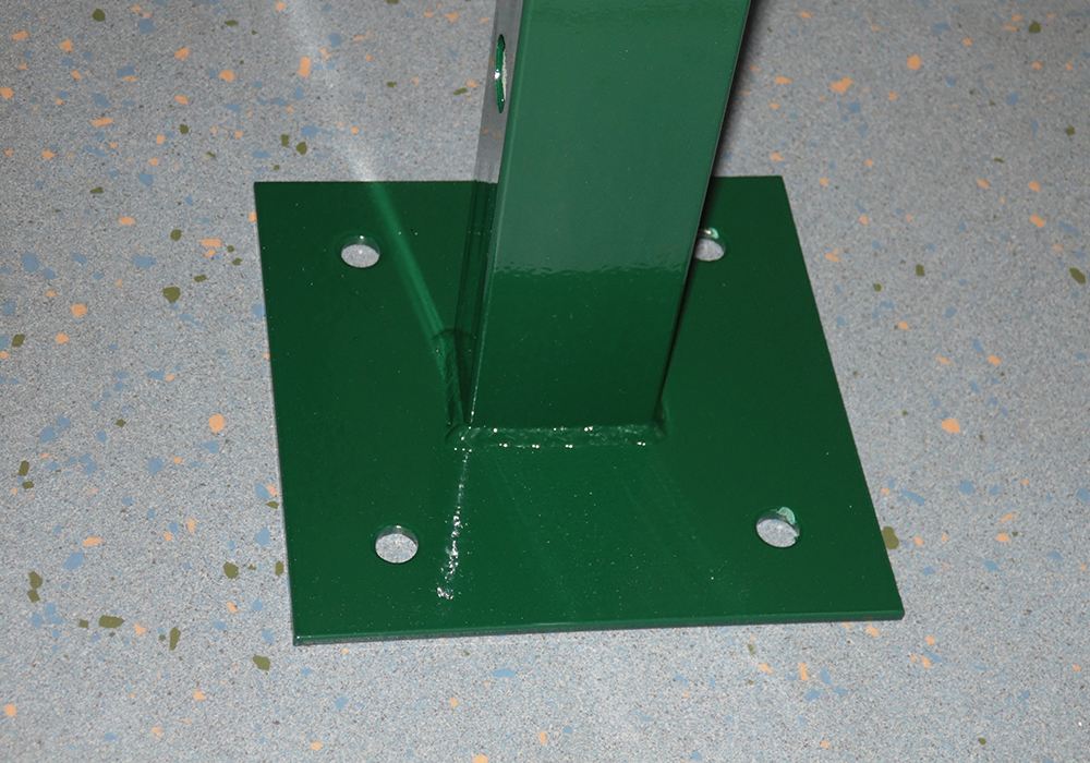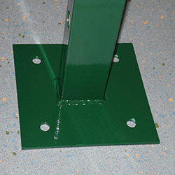 Для установки на бетон стовпи огорожі комплектуються спеціальною платформою (п'ятою) розміром 180х180 мм і товщиною 4 мм, яка приварюється до основи стовпа. Платформа по кутах має чотири отвори Ø13мм для анкерних болтів.